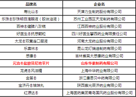 中關村科技旗下山東華素制藥有限公司產品——元治?(鹽酸貝尼地平),榮登2019“中國醫藥·品牌榜新型鈣拮抗劑【銳榜】榜單。