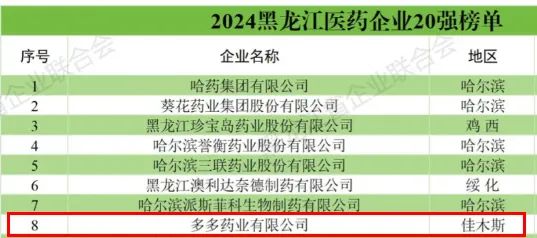 據榜單顯示,2024黑龍江醫藥企業20強合計實現營業收入達到了347.91億元,充分展現了黑龍江醫藥行業的蓬勃發展和強勁實力。本次榜單的發布,不僅是對多多藥業發展成果的肯定,更是對企業未來發展的激勵和鞭策。