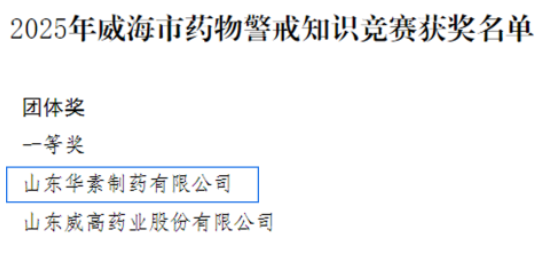 近日,由威海市市場監督管理局、威海市總工會、威海市人力資源和社會保障局聯合舉辦的2025年威海市藥物警戒知識競賽活動圓滿落幕。在這場激烈的角逐中,中關村科技旗下山東華素制藥有限公司(以下簡稱 “山東華素制藥”)的3名參賽選手憑借深厚的專業功底和出色表現,一路過關斬將,最終榮獲團體一等獎,個人一等獎2名、二等獎1名的優異成績。